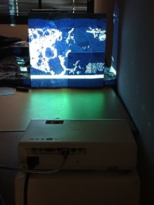 Projection video sur maquette 3D des zones d’ombres et éclairées en fonction des phases lunaires sur un an